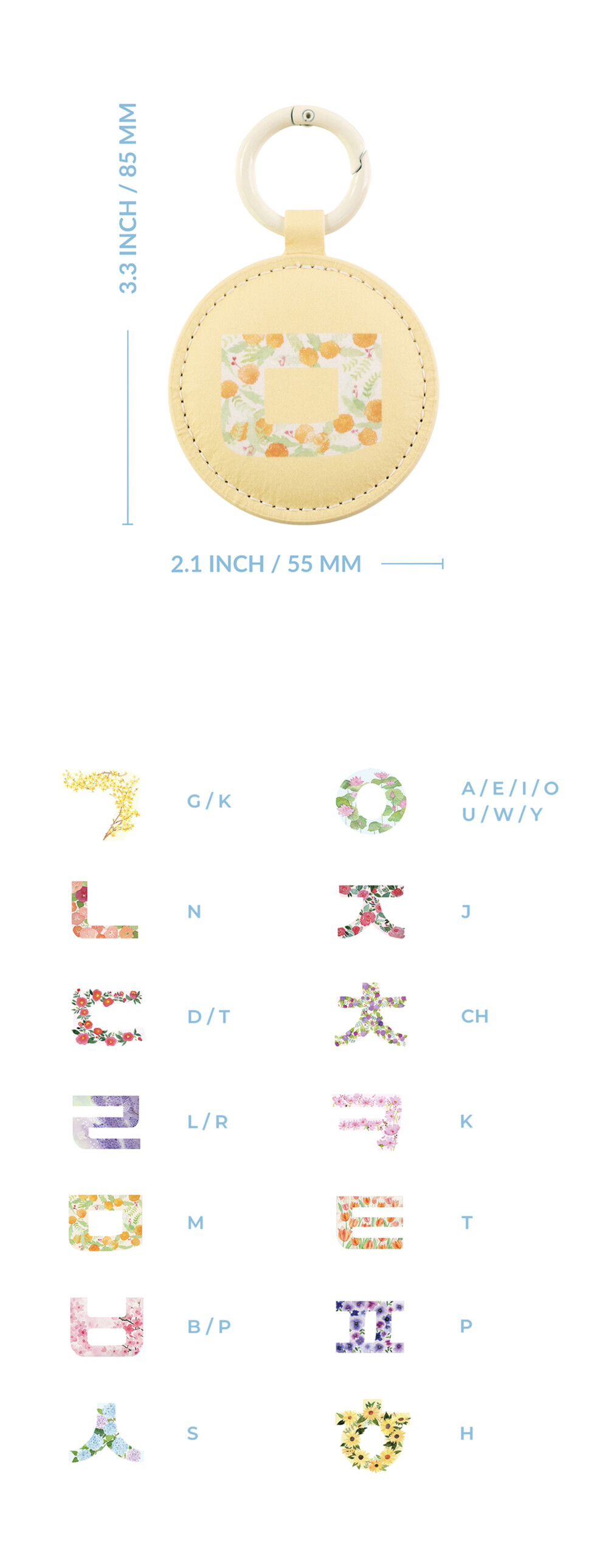 ㄱ 부터 ㅎ 까지 총 14개의 자음 종류가 한지 키링으로 구성되어 있어요.