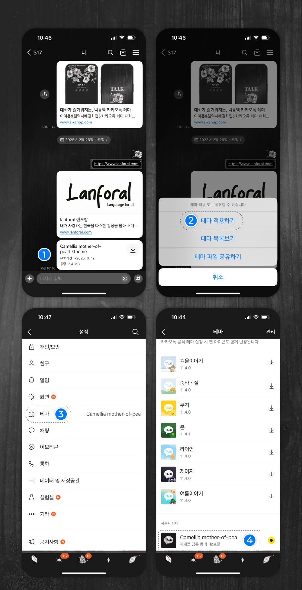 05. 카카오톡 실행 우 전체 설정 → 테마 → 테마적용